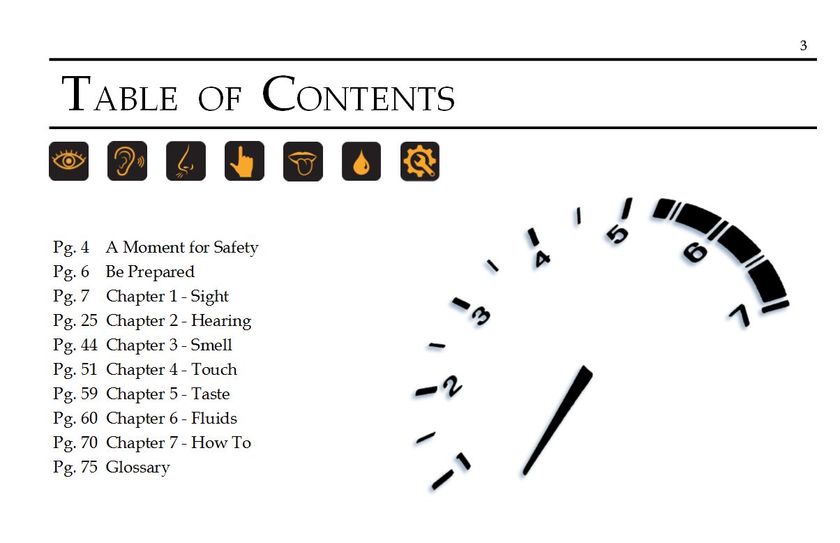 You may not be an expert at automotive troubleshooting or repair, however you are an expert when it comes to using your own senses. Use your eyes, ears, hands and nose to identify the cause and severity of common problems you will experience while driving. This automotive troubleshooting guide will also work without cell phone service or internet, which is often when you need help the most. Troubleshooting With Your Senses was designed to fit in the glove box of every car you own, and includes full color pictures of many automotive issues and roadside repairs. This book was written with a new driver in mind, in easy to understand language and with dozens of pictures to identify symptoms. Troubleshooting With Your Senses makes an excellent gift for your spouse, new driver, child going off to college, fleet driver or anyone who spends a-lot of time on the road! Here you will find information that should be in every car owner’s manual, but isn’t!